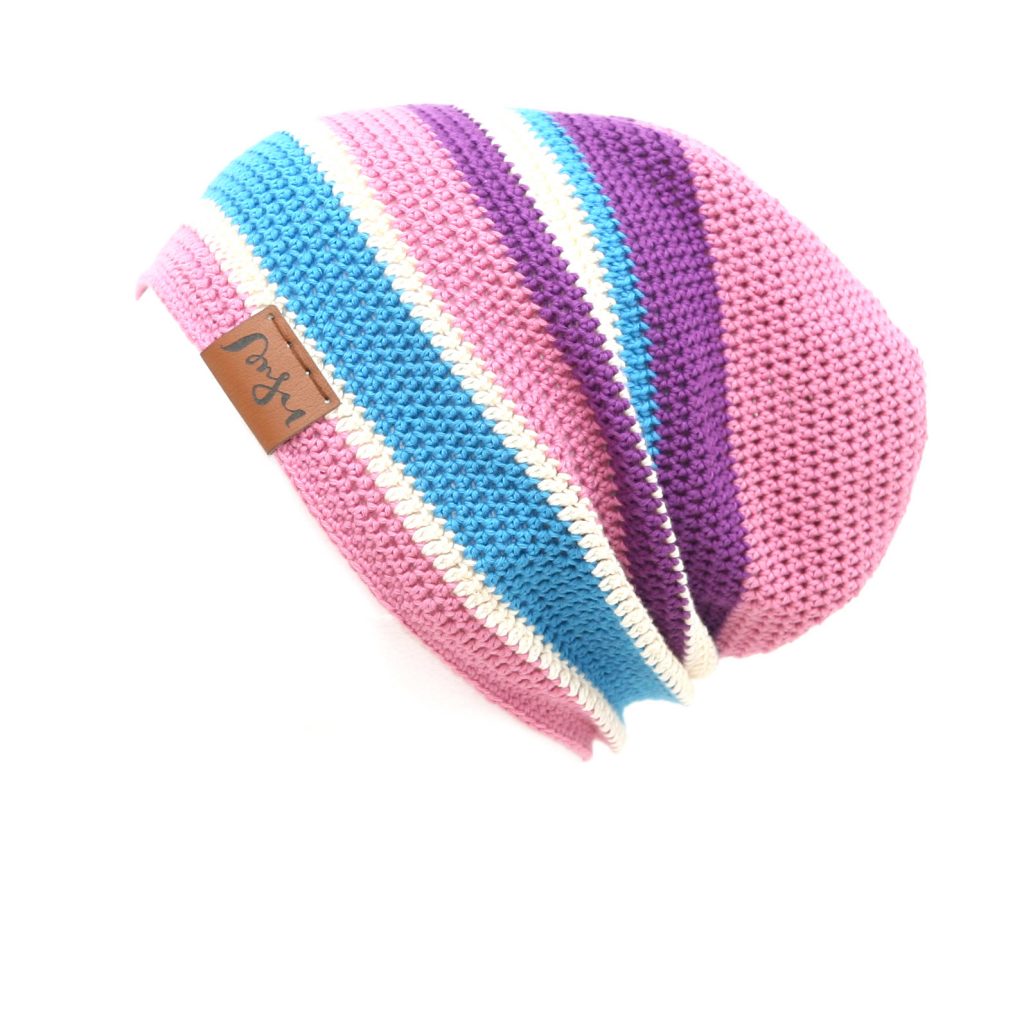 Kevyt ja värikäs pipo on loistava asuste syksyyn ja kevääseen, sekä koleampiin kesäpäiviin. Tarvittaessa suojaa päätä toki myös suoralta auringolta. Materiaalina pipoissa on 100% puuvilla, joka sopii ominaisuuksiltaan hyvin kevyempiin päähineisiin. Puuvillainen pipo ei hiosta päätä, materiaali on kestävää ja sitä on helppo käsitellä sekä pestä. Puuvilla ei aiheuta kutinaa iholla kuten perinteiset villalangat.